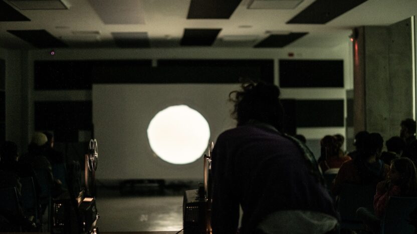 Comme beaucoup du travail de Maruyama, la description de cette performance en double projection 16mm est trop simple pour rendre compte de son effet. Deux points illuminés dansent dans l’obscurité, trahissant les imperfections des rouages et des mécanismes motorisés des projecteurs analogiques. Telles des lunes dansantes bafouillant les vitesses de projection défectueuses pour nos yeux faillibles.